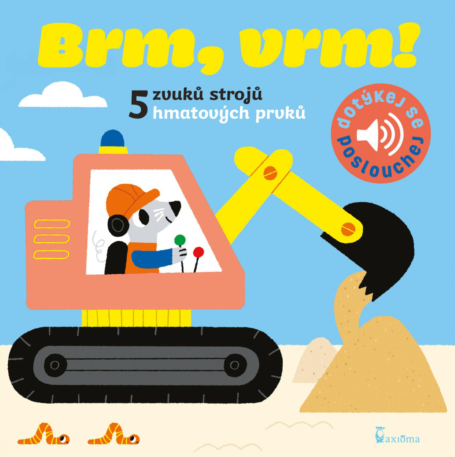 Sklápěč, sbíječku, bagr, jeřáb a parní válec. Na každé stránce jsou zakomponovány až dva různé, většinou textilní materiály, které jsou příjemné na dotek. Na každé stránce je také nezbytné zvukové dotykové tlačítko, k jehož spuštění není zapotřebí síly. Reálné zvuky jsou ve vysoké kvalitě.