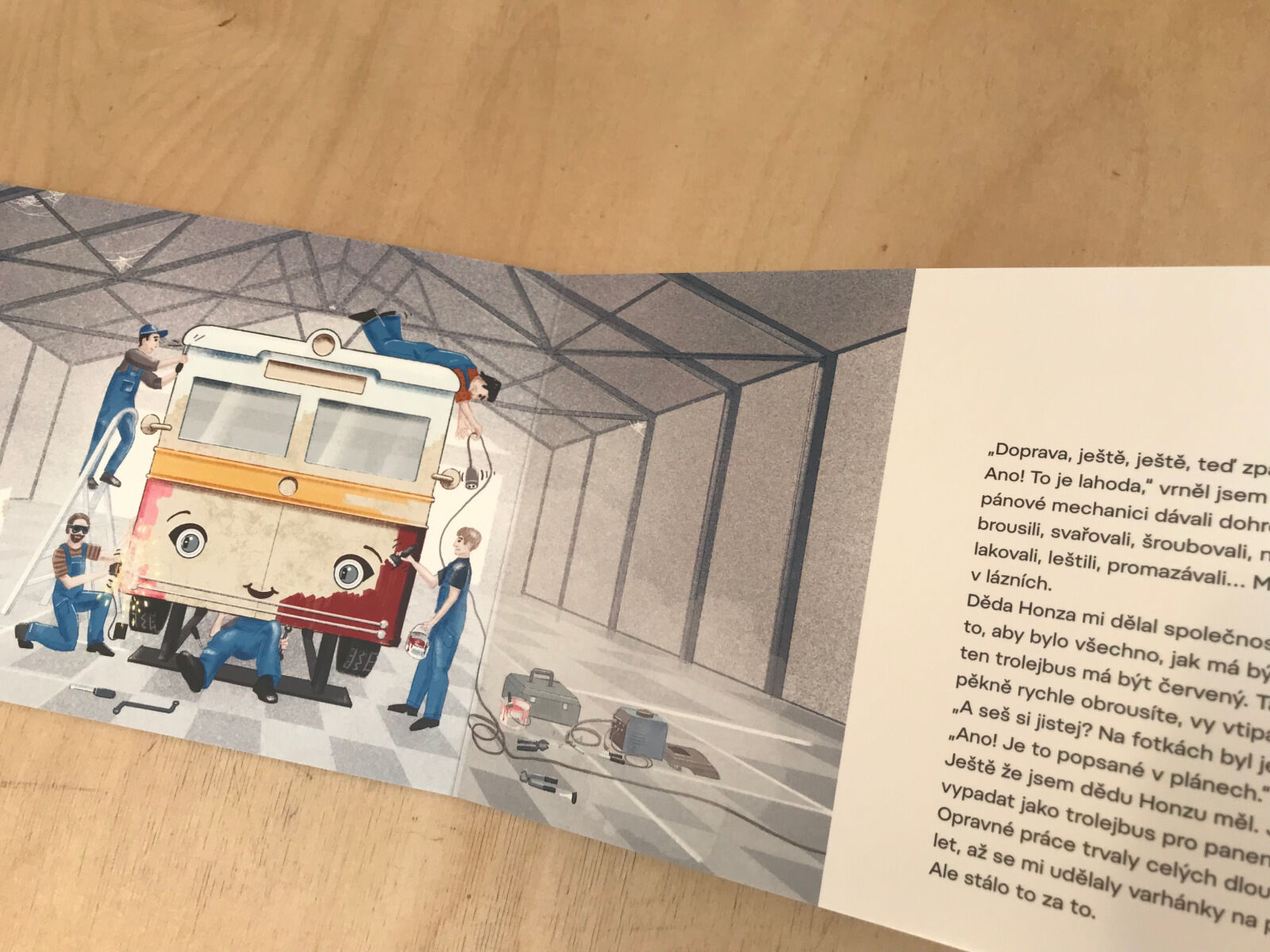 V muzeu v pražských Střešovicích obdivují malí i velcí tramvaje, autobusy, a dokonce trolejbus. Jenže chybělo málo a tenhle nádherně červený Praga TOT 303 by rezivěl a zarůstal křovím kdesi za humny. Naštěstí ho vypátral děda Honza a postaral se, aby opět zářil krásou jako téměř před stoletím, kdy se poprvé rozjel ulicemi hlavního města.