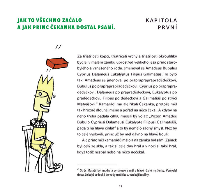 Originální pohádka vystavěná na klasickém schématu, protkaná velkou dávkou jazykové hravosti, vtipu a nonsensu. Knížka je plná slovních hříček a nečekaných zvratů, které z ní dělají jednu z nejvýraznějších současných pohádek