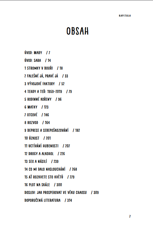 Kniha je cenným zdrojem pro rodiče, učitele i mentory. Obsahuje kapitoly Rodiny, Matky, Otcové, Rozvod, Deprese, Sebepoškozování, Poruchy příjmu potravy, Drogy a alkohol, Sex, Sexuální násilí a Případové studie a zkušenosti z terapeutické praxe.