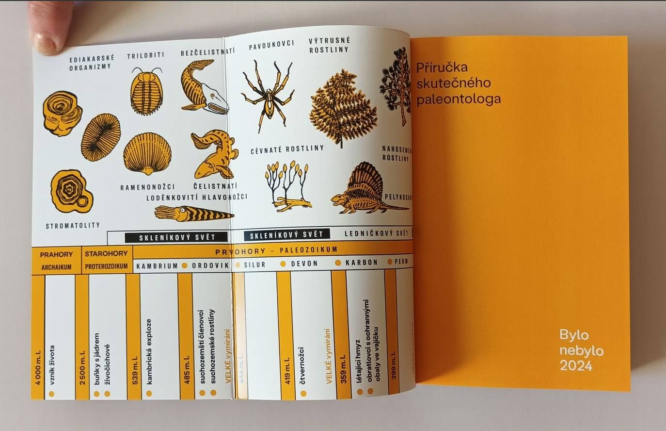 V pěti kapitolách se dozvíte nejen jak vznikají zkameněliny a jak je paleontologové studují, ale i spoustu dalších věcí. Třeba jak z polámaných zkamenělých kostí a schránek sestavit dávno vymřelý organizmus, jak zjistit jeho způsob života, jak určit ve které době a v jakém prostředí žil, nebo jak sestavit evoluční strom. Součástí příručky jsou i stručné dějiny planety Země, atlas zkamenělin a tipy na různé domácí pokusy.