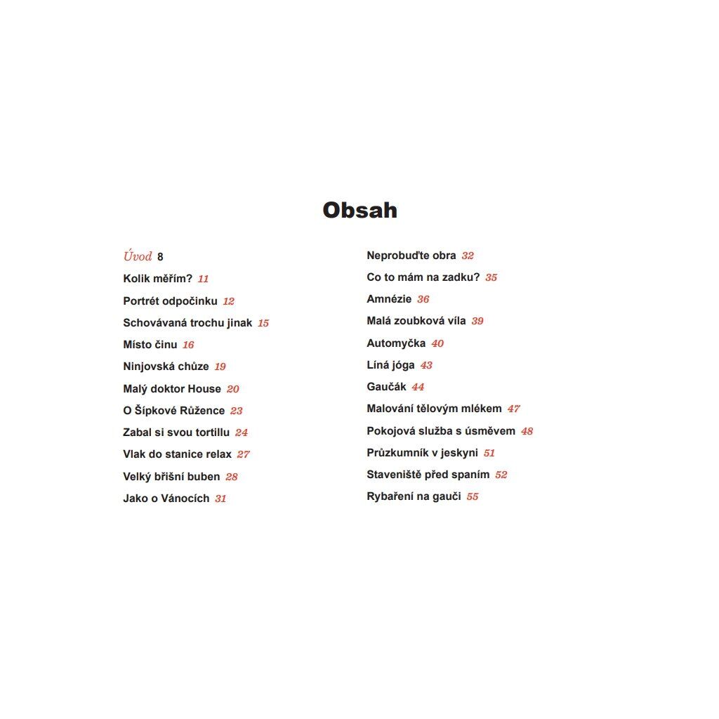 Potřebujete pauzu právě teď? Tato kniha obsahuje rychlé a jasné návody na 50 zábavných, účinných a veselých her, které můžete hrát s malými dětmi a u toho ležet. Nepotřebujete k tomu žádné baterie, obrazovky ani nekonečný seznam pomůcek!