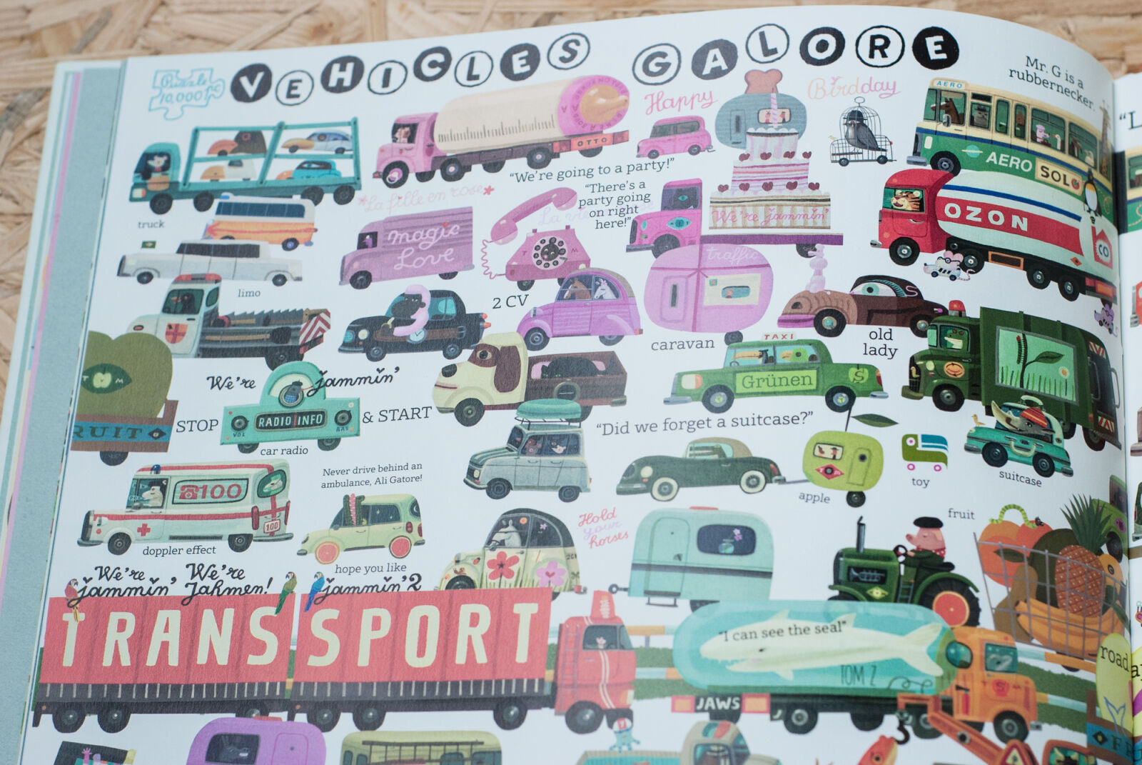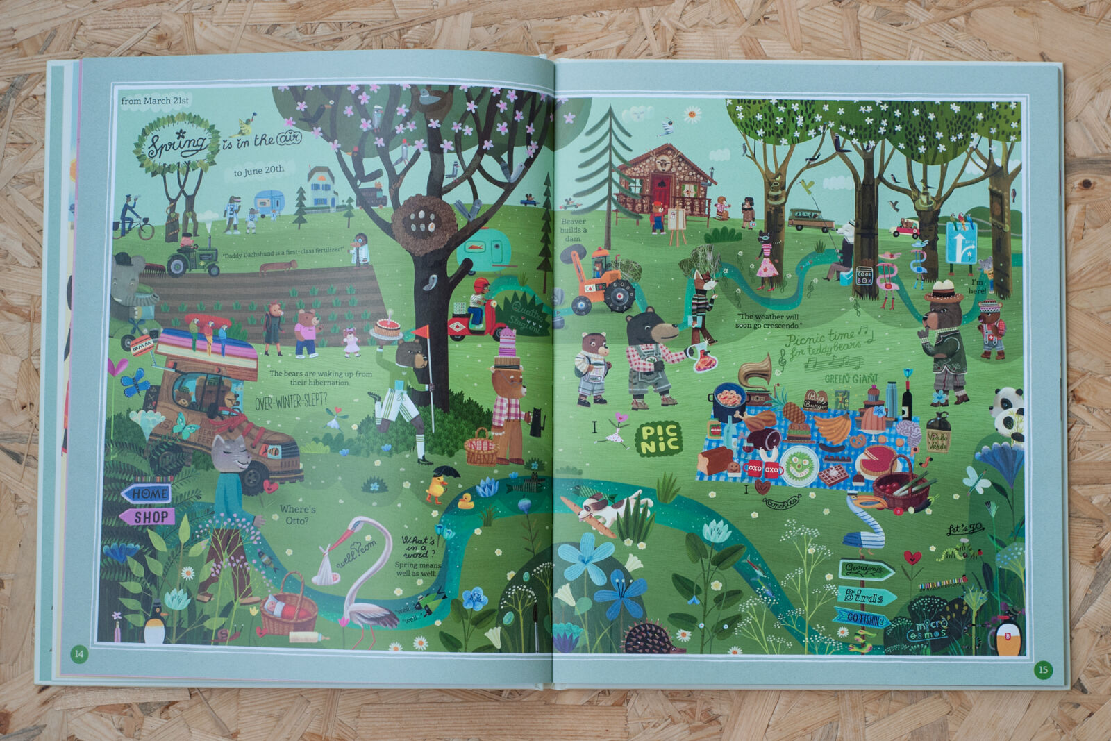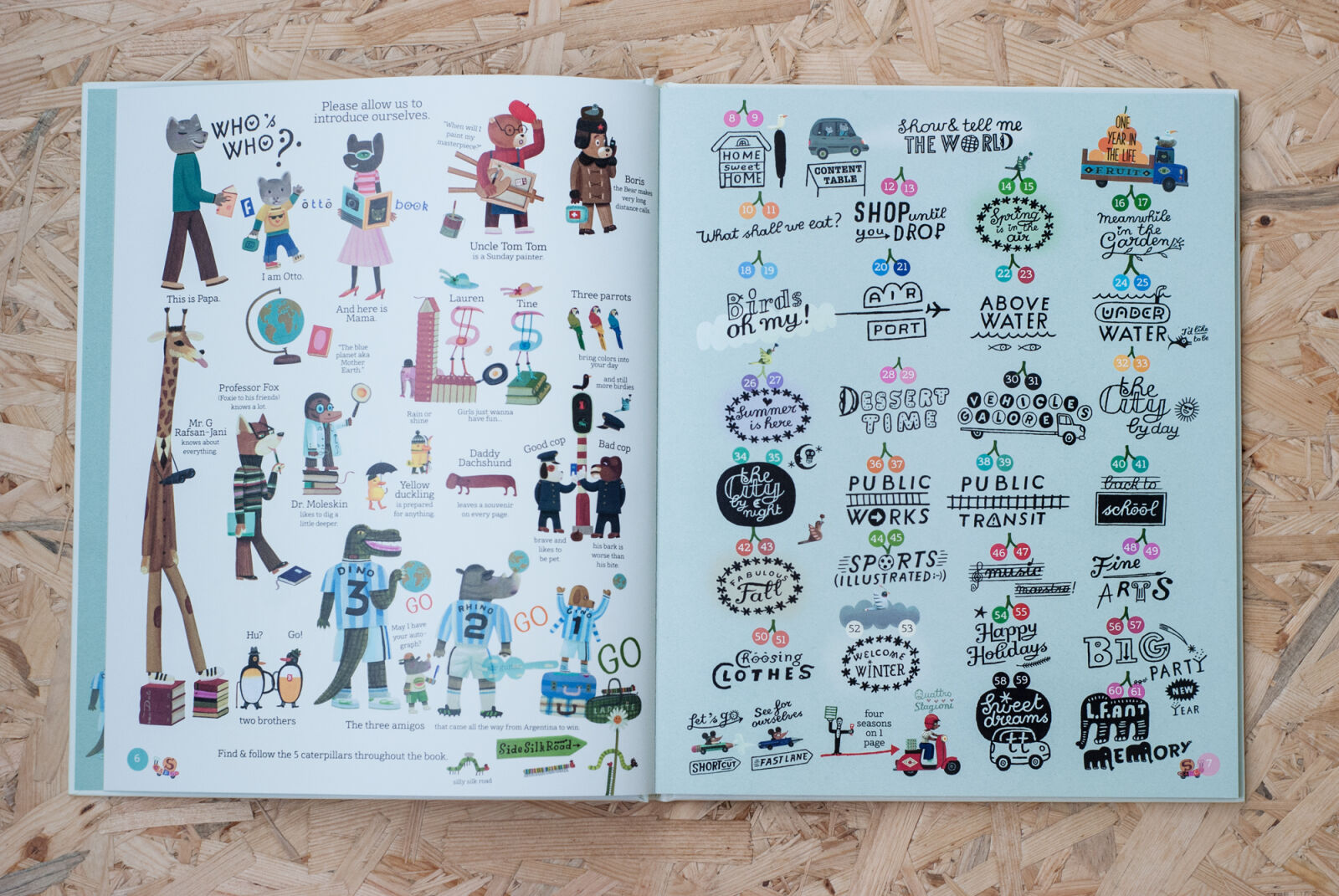 The aesthetically entrancing scenes are grouped into categories such as the four seasons, athletics, the arts, a day at school, or even the mysterious and uncharted world below the sea. Each page of Show & Tell Me The World is filled with multitudinous details, which illustrator Tom Schamp has molded to suit both his bold style and the ever-unsatiated curiosities of children.