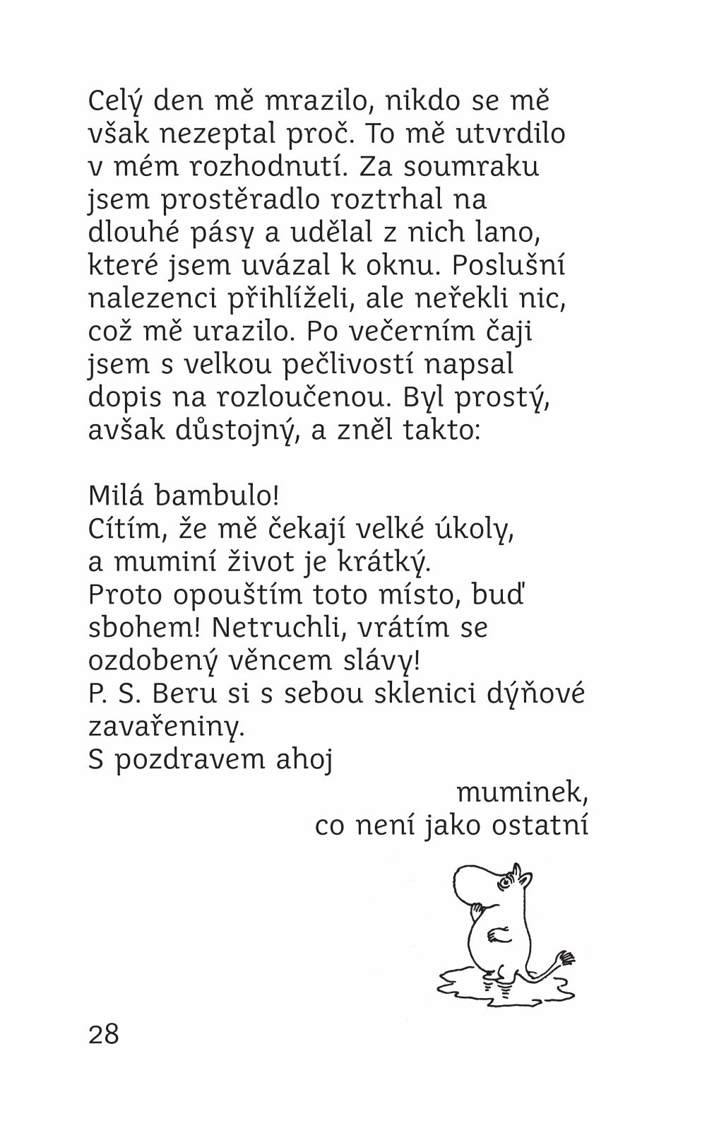 Jednoho letního dne se muminkův tatínek pustí do psaní pamětí. Vzpomíná na bouřlivé mládí plné nádherných snů a velkých činů. Líčí, jak utekl z nalezince, neohroženě se vydal do světa a s novými kamarády Bedřiškem, Piplou a Kryšánkem podnikl dalekou a nebezpečnou plavbu na neznámý ostrov. A když za mořské bouře zachránil budoucí muminkovu maminku, důstojně a šťastně tak završil hrdinné skutky. Poté se tatínek usadil v půvabném údolí, postavil dům a s rodinou a přáteli prožíval s noblesou sobě vlastní další podivuhodná dobrodružství.