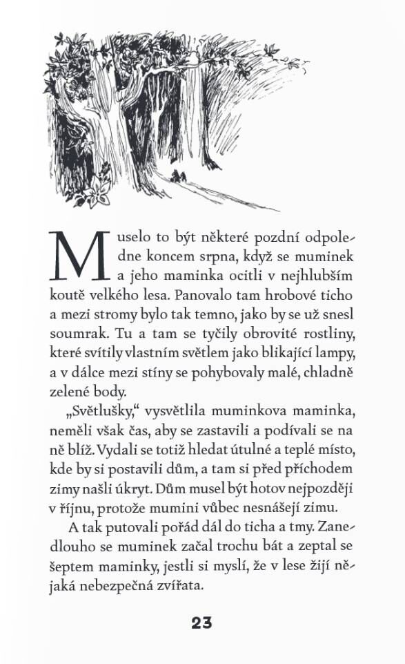 Právě během něj zažijí mnohá dobrodružství, seznámí se s celou řadou roztodivných tvorů a narazí na překrásné údolí! A dál už se jedná o historii. Vychutnejte si knížku, kde se muminek na obrázcích sám sobě ještě příliš nepodobá, ale magie vyprávění Tove Janssonové už je přímo hmatatelná.