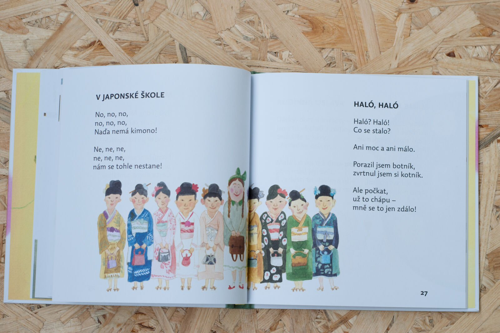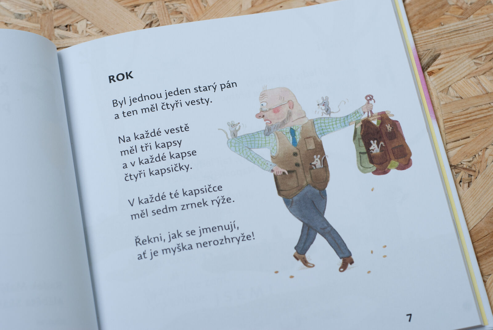 O zvířátkách, o klucích a holčičkách (o holčičce, která si vlezla do želvího krunýře, o jiné holčičce, která si nechala narůst vousy), tetách, pánech, švestkách nebo třeba hruškách. Veselé texty Radka Malého doprovázejí půvabné ilustrace Alžběty Skálové.
